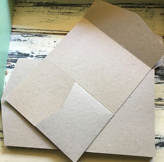 Kraft Wedding Pocket Invitations Diy Pocketfold Envelopes Brown Invite Ebay