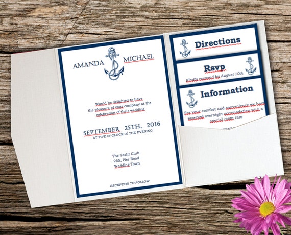 Nautical Wedding Diy Pocket Invitation Template Instant Download Editable Text Pocket Invite Suite Pk2