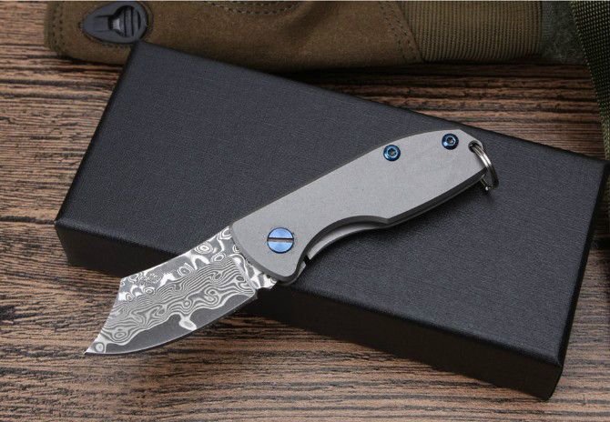 Mini Axe Knife Damascus Titanium Handle Keyring Pocket Knife Ball Bearing Pocket Keychain Folding Gift Knife For Man 1pcs Admi