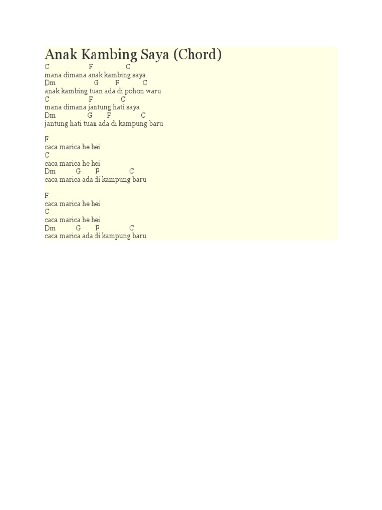 Daftar Lirik Dan Chord Lagu Anak
