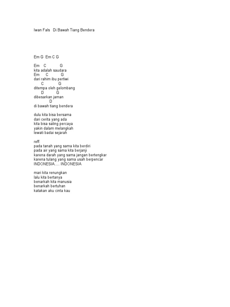 Lirik Dan Kunci Lagu Indonesia Pusaka Docx