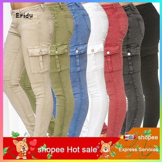 Eri Solid Color Women High Waist Skinny Cargo Long Jeans