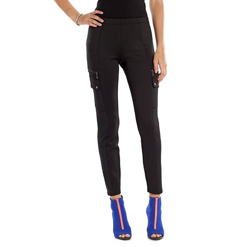 Details About Lisa Rinna Collection Knit Cargo Pockets Leggings Zipper Black M New A285574