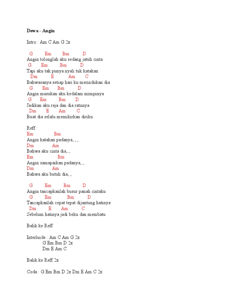 Doc Chord Lagu Dewa 19 Angin Riyanda Indrawan Sani