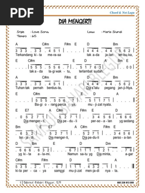 Chord Dan Not Angka Lagu Dia Mengerti Partitur Not