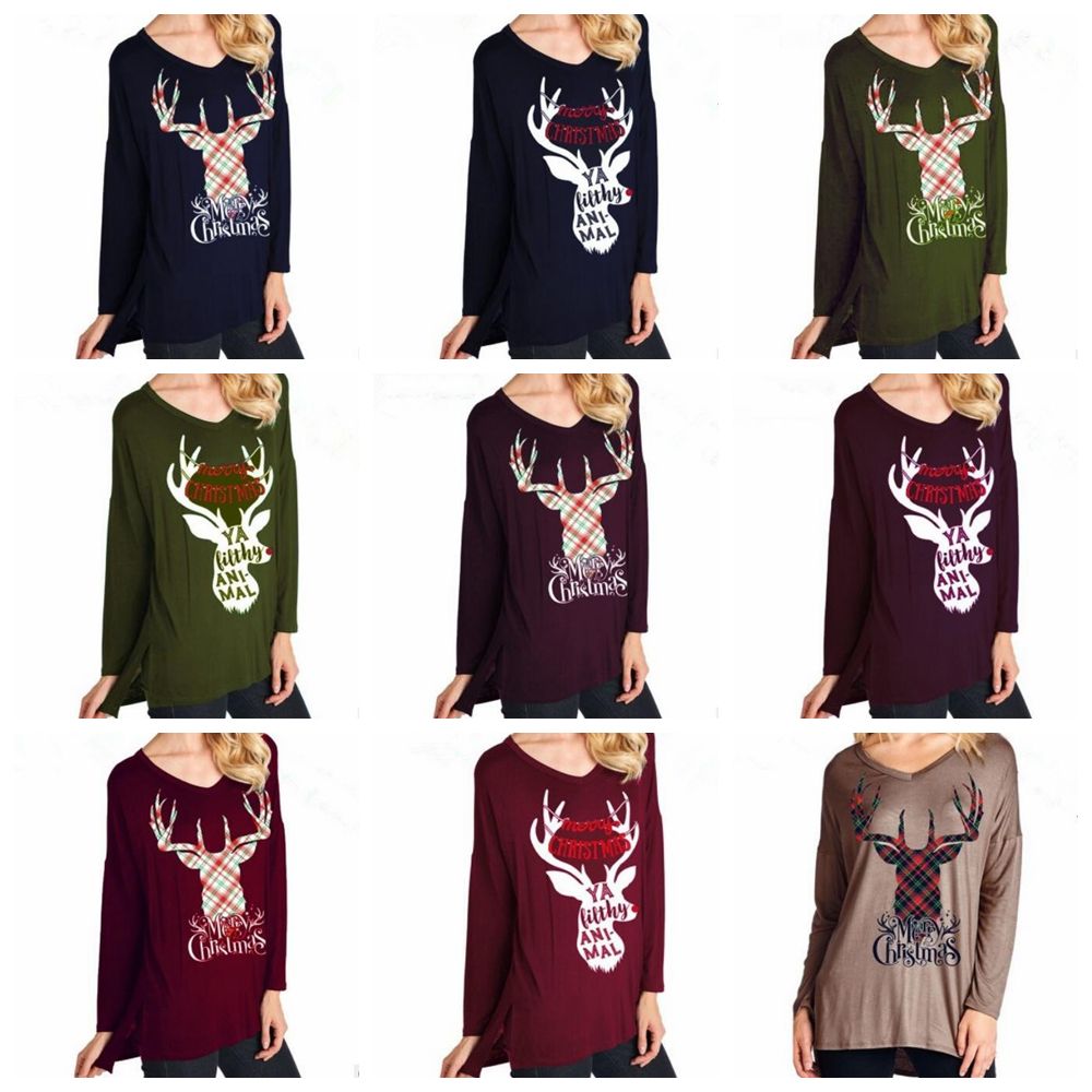 36styles Merry Christmas Women Shirt Elk T Shirt Circular Collar Long Sleeves Letters Printing T Shirt Xmas Party Top Sport Tee Ffa1202