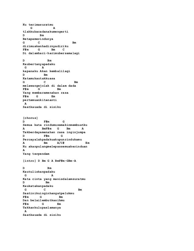 C am f g c am f g c am f kutrima suratmu tlah kubaca g c dan aku mengerti am f betapa merindunya dirimu.