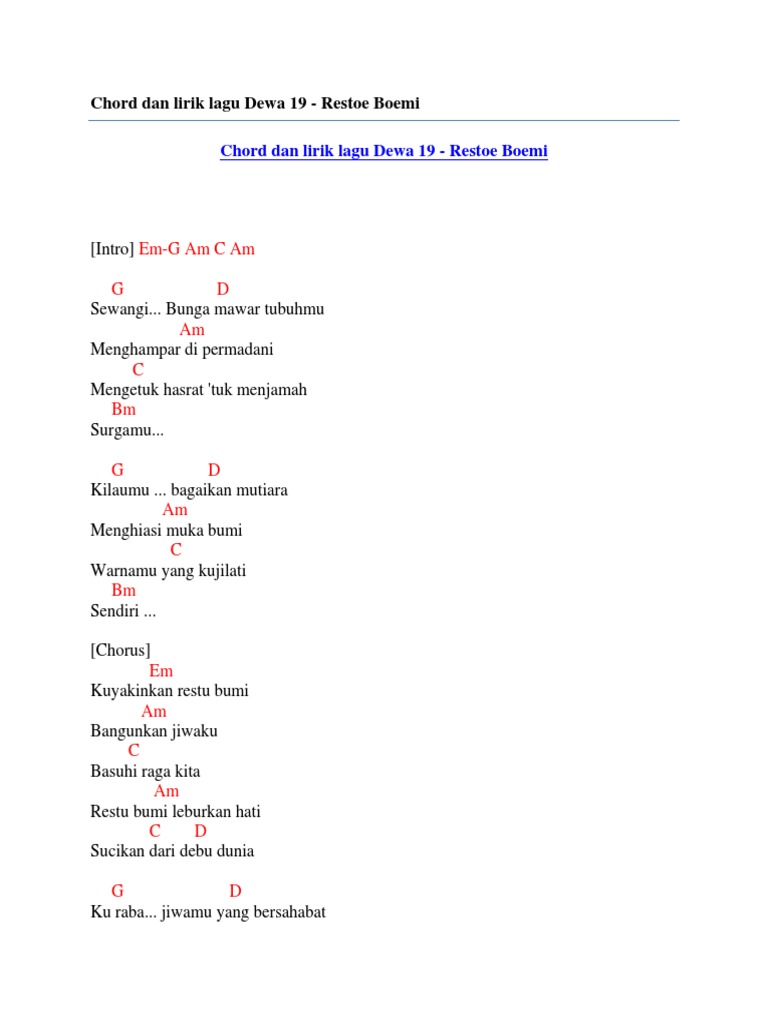 Chord Dan Lirik Lagu Dewa 19 Restoe Boemi