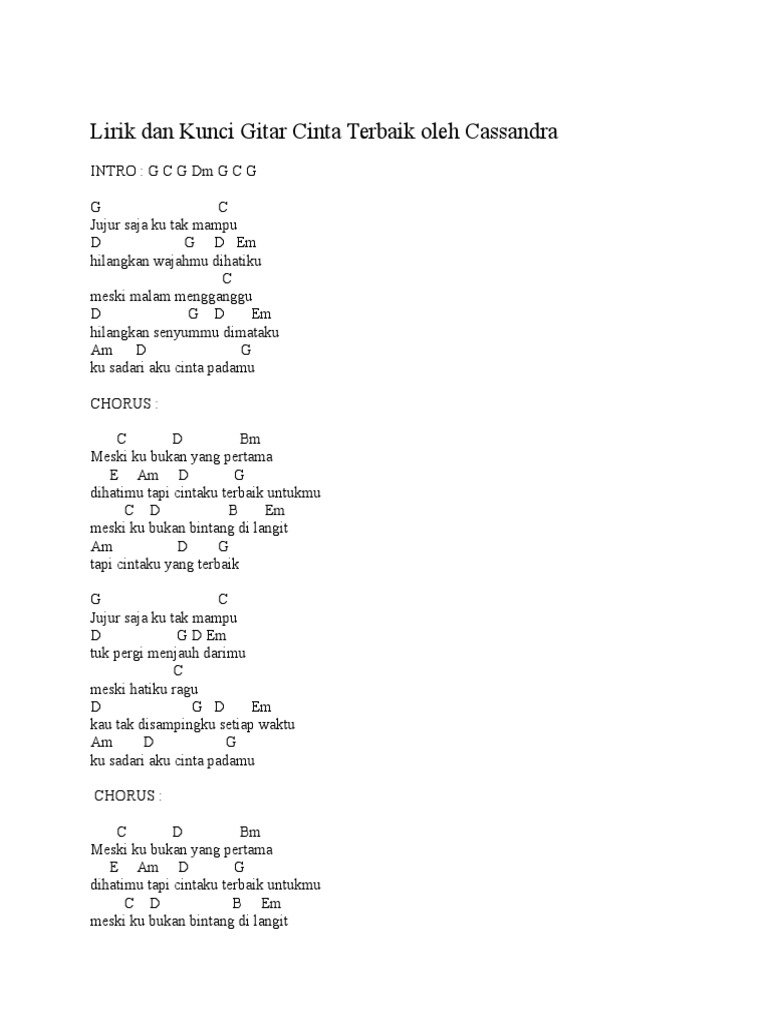 Lirik Lagu Cassandra Cinta Terbaik Dan Kunci Gitar Lirik