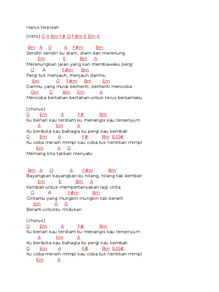 Chord Kunci Gitar Harusnya Aku Armada Band Seharusnya
