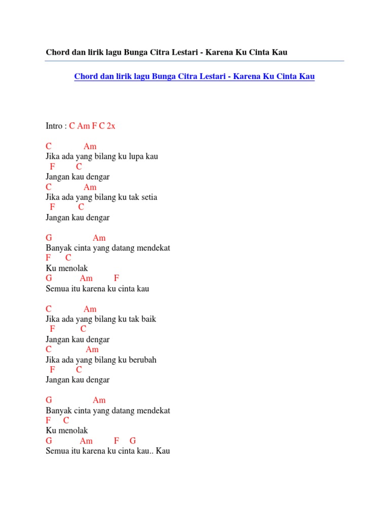 Chord Dan Lirik Lagu Bcl Karena Ku Cinta Kau Download