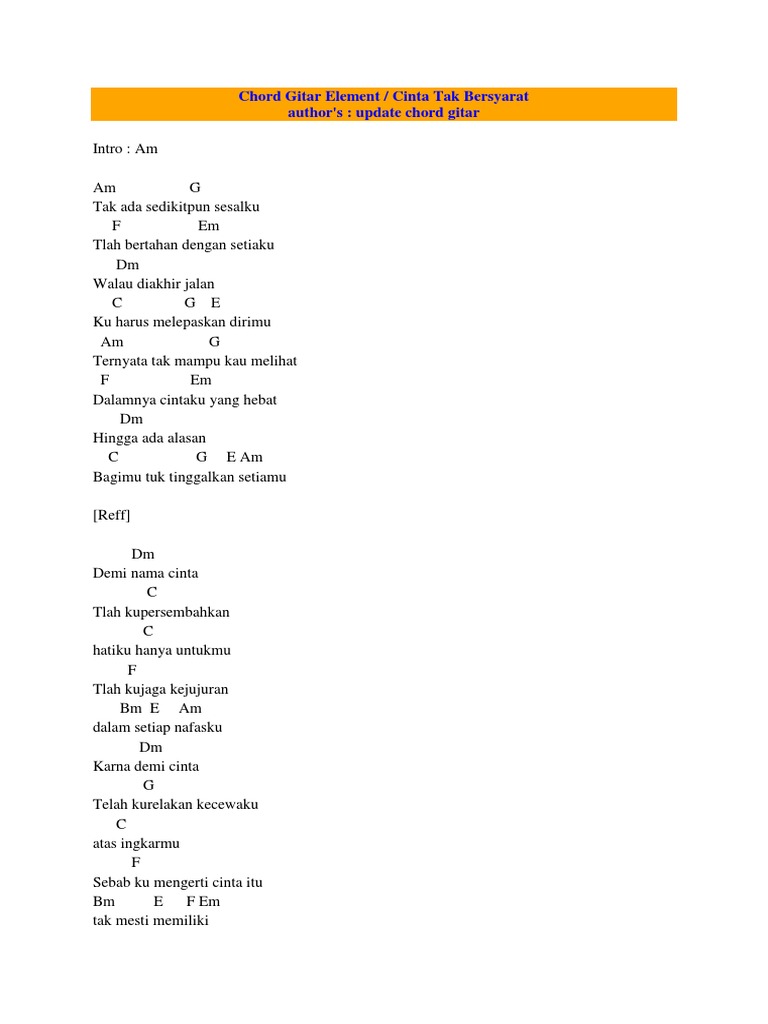 Kunci Gitar Element Cinta Tak Bersyarat Chord Dasar Kunci