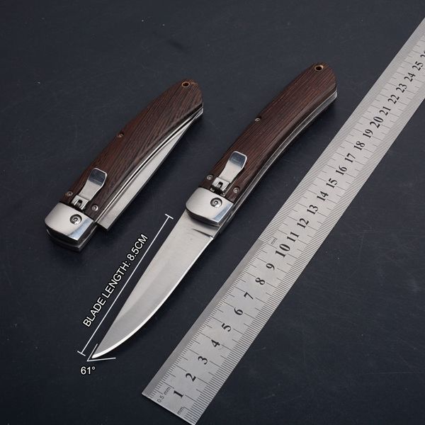 Top Quality Cheap Auto Tactical Folding Knife 440c Satin Drop Point Blade Wood Handle Edc Pocket Knives With Nylon Bag Hunting Knife Brands Deer