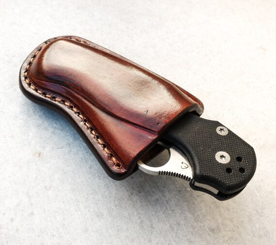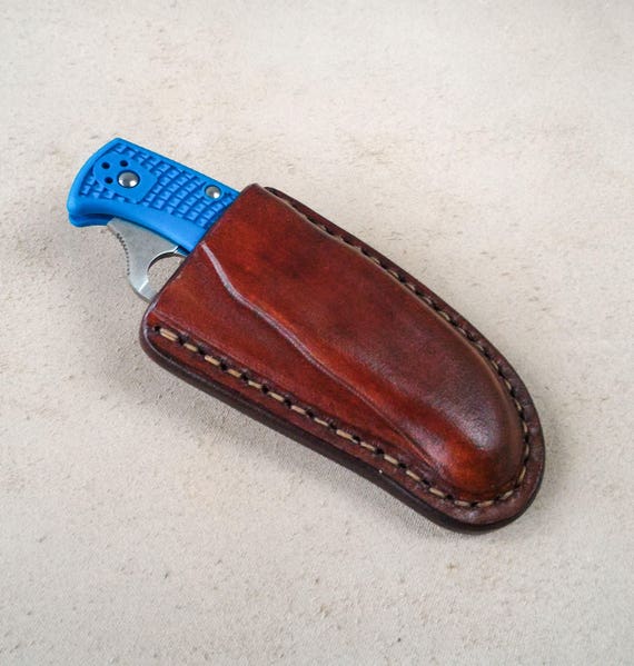Spyderco Tenacious Friction Sheath With Belt Loop Custom Leather Sheath Folding Knife Case Pocket Knife Leather Case Folding Knife Edc