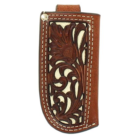 Small Nocona Pierced Leather Pocket Knife Sheath Case Cutouts Top Stitching