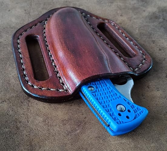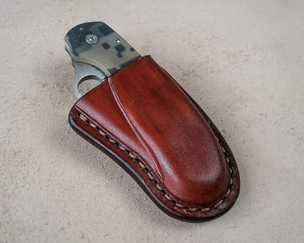 Spyderco Tenacious Custom Leather Sheath Friction Sheath With Belt Loop Folding Knife Case Pocket Knife Leather Case Spyderco Case