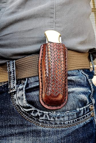 Pocket Knife Sheath Pouch Case Folding Blade Multi Tool Leather Basketweave