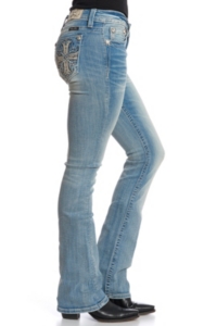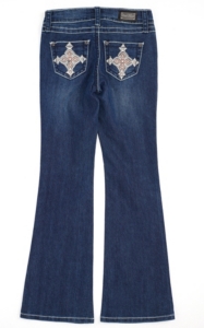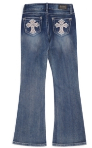 Wired Heart Girls Rhinestone Cross Pocket Boot Cut Jeans