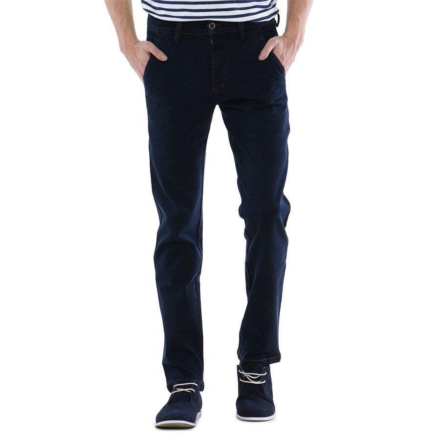 Mens Super Stretchable Silky Fabric Cross Pocket Relax Fit Jeans Chinos Blue