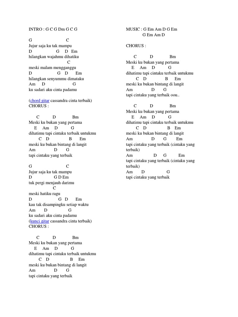 Chord Cinta Terbaik Cassandra Kumpulan Chord Lagu